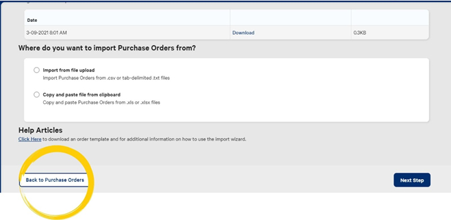 Your Orders have now been imported. Select Finish or Back to Purchase Orders to go back to the Purchase Order List page.