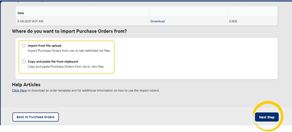 Select Import New Purchase Orders to continue.