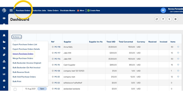 Purchase Orders can be imported into the system in bulk, using our import wizard.