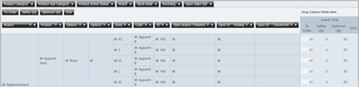 Replenishment values can be used to calculate what products need to be added to a branch transfer to move stock from a warehouse to a retail branch.