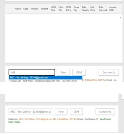 From the text underneath the customer field, click View Product Sales History. The report that opens will show Customer Details, Outstanding Invoices, Past Sales by Month, and Recently Ordered Products.