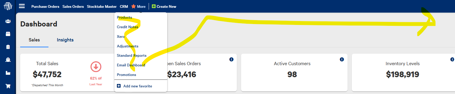 Show all favorites on main cin7 menu bar (ie menu items under *More - until menu bar is full)