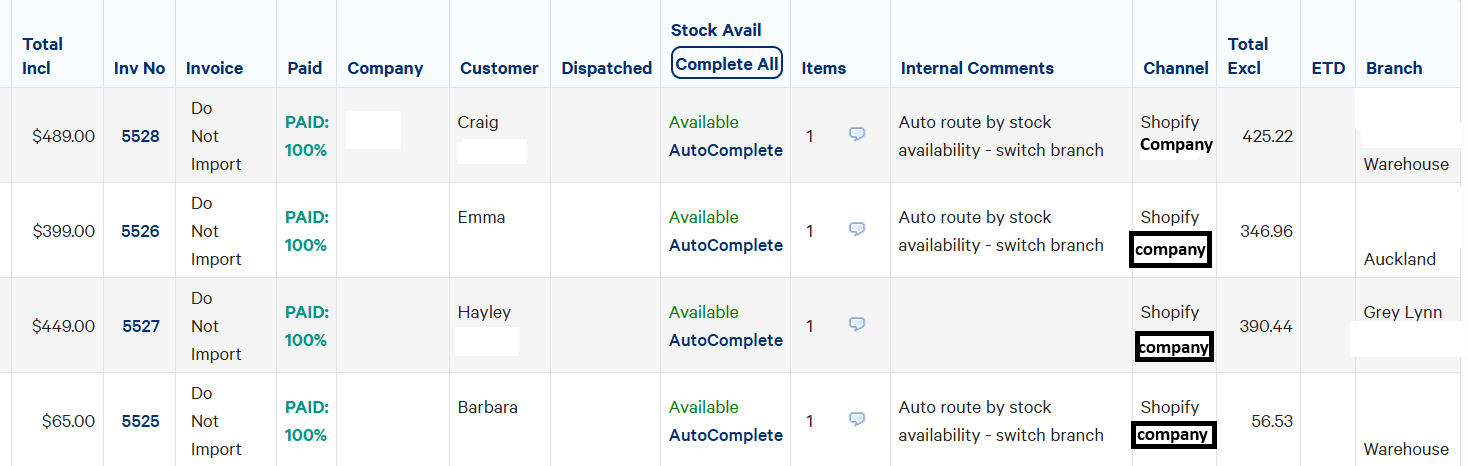 I have a client who sells furniture. They have a POS in Auckland and in Mt Maunganui. Which means there are 2 POS stores. When an order is processed into Cin7, the channel is identified as “Shopify_Company_”.