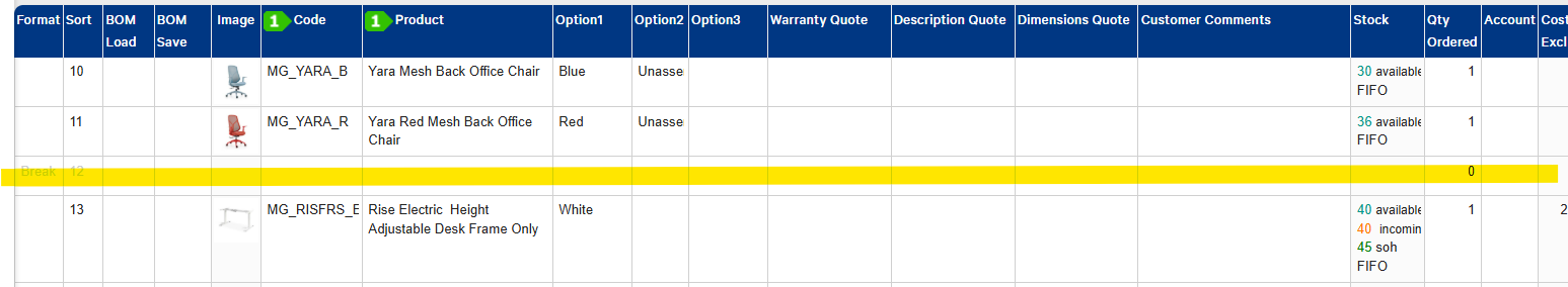 When anything other than a product (eg. Format: insert header, insert break) is added to the product line in a quote, the quantity ordered column defaults to zero and it cannot be removed. When we convert the list to a Quote PDF, the zero pulls through to the finished quote.