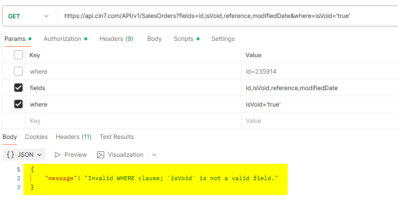 isVoid needs to be a valid WHERE parameter in the custom V1 API